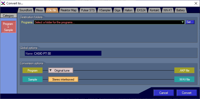 This lets me export to sf2 soundfont or some other formats. I’m not sure what I really want here. I think I just want some folders of wave files. I did batch converts at some point in the past but I can’t recall exactly how I did it.