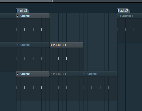 In the following screenshot the first time we trigger the Pad#2 region, the first clips will be triggered, but the second time the first clip of the first track will be triggered with the second clips of the second and third tracks. The third time will trigger the first clips of the first two tracks with the third clip of the third track, and so on.