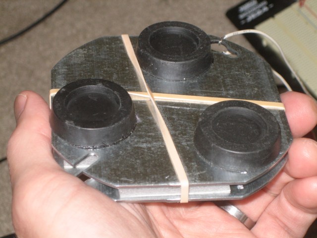 Now let’s build one and see about how well it performs. What I’m showing here is a prototype, held together with rubber bands, but the final version should be pretty similar, albeit epoxied together instead.