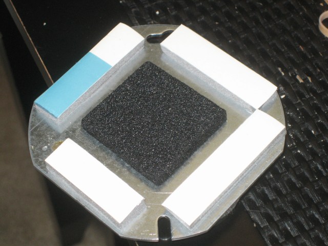 The theory of operation is that the conductive foam will be sandwiched between two steel plates. The plates will be squeezed together by foot pressure and the resistance provided between the two plates via the conductive foam should vary in some inverse proportionality to the displacement of the top plate, and hence the amount of foot pressure.