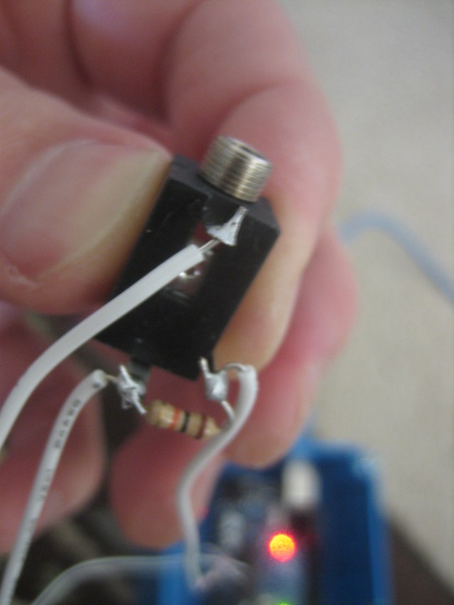 The three connection points are the +5v and ground connections along with the signal output connection. This keeps me from having to mount another board in the enclosure. Ultimately I’d like to create a board for this that doesn’t use the factory Arduino board, but since I need the USB interface I don’t know if this is going to be feasible.