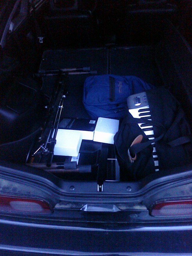 I set up a new live electronic music rig the other day to go jam with some friends. I haven’t pulled something like this together in a long time so I made a list and double checked to make sure everything was working in my living room before I took it out.