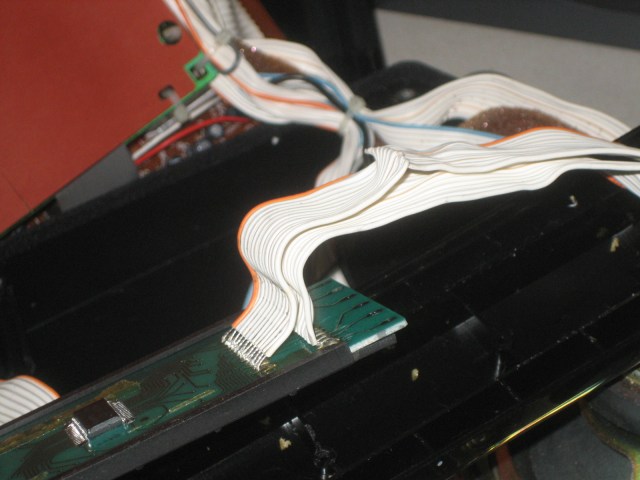 When I first took my guitar apart I found that the ribbon cables that connected the fretboard to the rest of the guitar were pinned between the neck and the body of the guitar at the heel of the neck. I assumed that this was the cause of my malfunctioning frets. However, the cables tested out fine with the meter, so it must be something else.
