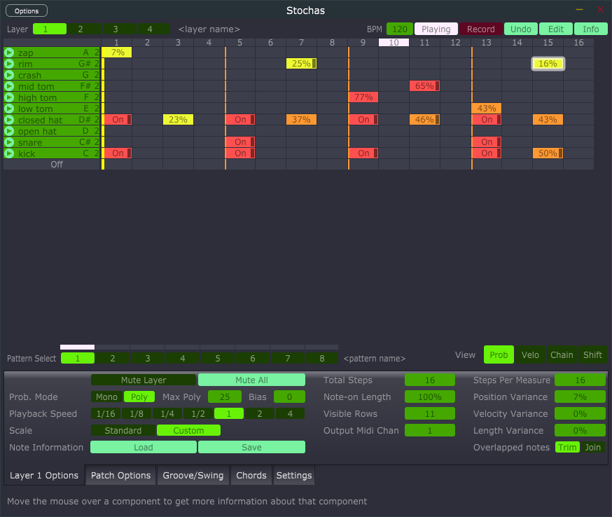 This is a pretty standard arpeggiator VST plugin that has stochastic playback abilities. You can set probability weights to different steps and affect the playback in a statistically managed way.